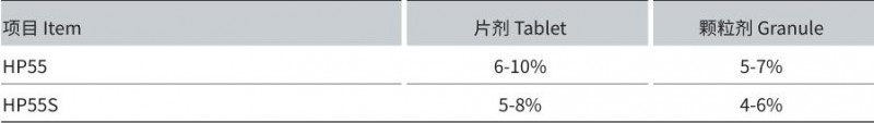 HPMCP用量一般為片芯的6-10%。